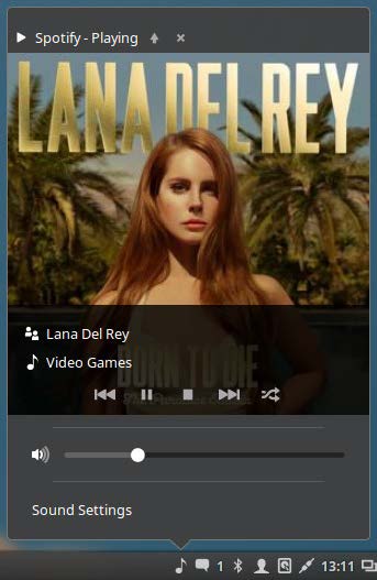 L’applet Son a bénéficié d’une sérieuse mise à jour. Les informations concernant le morceau et le média font désormais partie d’une nouvelle disposition et se trouvent au sommet de l’image représentant la couverture de l’album. (dans l’exemple ci-après).