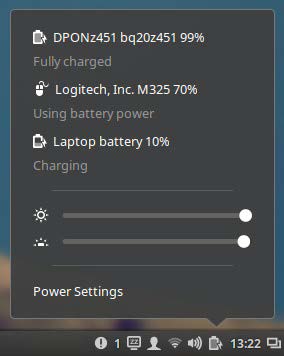 L’applet alimentation électrique a reçu de nombreuses corrections de bugs et la façon dont il détecte et gère plusieurs batteries a été considérablement améliorée. Les appareils connectés et les batteries sont maintenant affichés en utilisant les données fournies par leur fabricant. Dans la capture d’écran ci-dessus, par exemple, ce qui était décrite de façon générique comme « souris sans fil » par Cinnamon 2.6 est maintenant plus précisément décrite comme un «Logitech M325″.