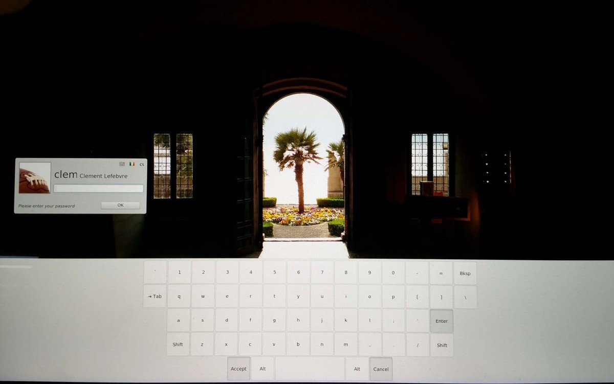 Pour améliorer l’usage de Mint sur des écrans tactiles et les appareils mobiles, un clavier a également été ajouté à l’écran de connexion. Ce clavier est disponible dès le thème par défaut (« Mint-X ») et il fournit à la fois des caractères communs et spéciaux.