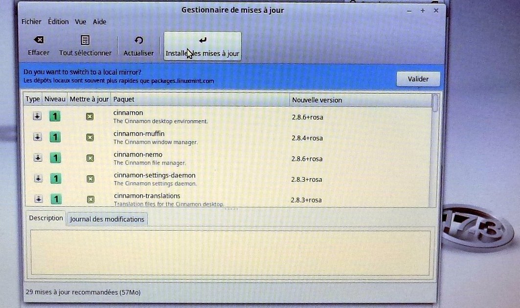 Mintupdate vous renverra le téléchargement des nouvelles versions de paquets.