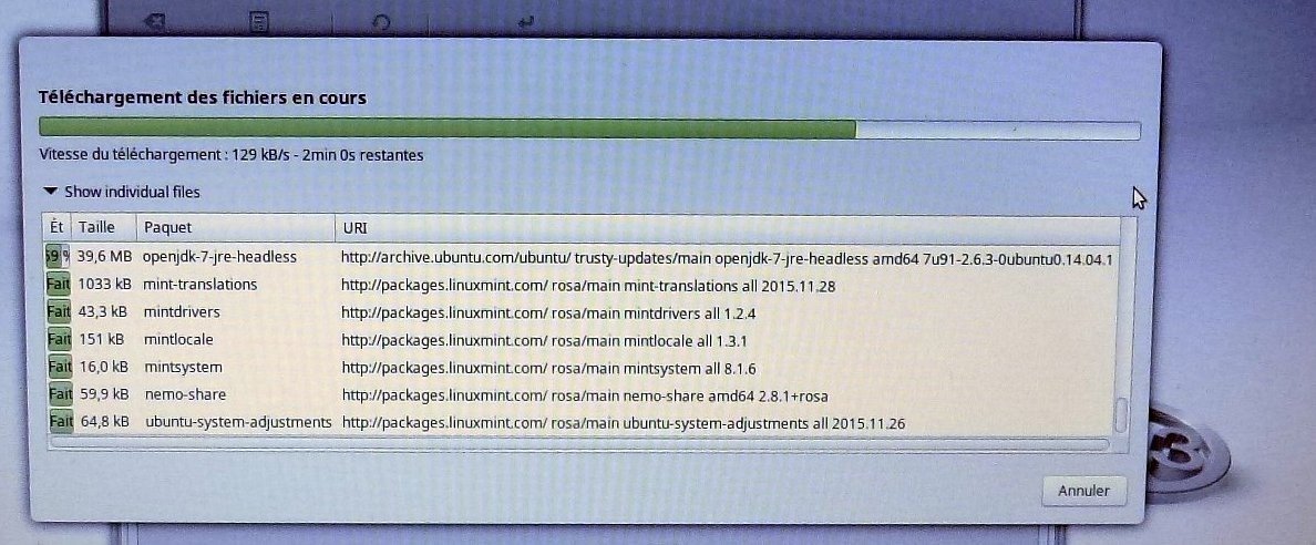 Commençons par l’installation d’une version 17.3. Globalement, les procédures d’installation de Mint 17.3 sont très proches de celles des versions précédentes ou de Linux Mint 17.2 que nous avons déjà détaillées précédemment, auxquelles vous pouvez vous reporter. Ce qui suit est un mixte d’installation en anglais et en français; c’est pourquoi les copies d’écran sont dans ces 2 langues.