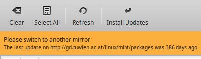 Le gestionnaire de mise à jour effectue maintenant plus de contrôles qu’auparavant. Il vous avertit si le miroir que vous utilisez n’est pas à jour :
