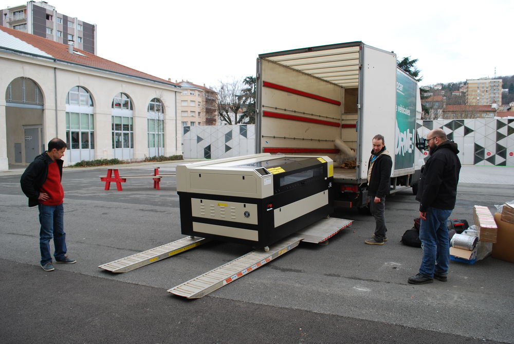 Nous vous en parlions depuis le mois de septembre 2017… la découpeuse laser grand format RS10-60L est en place depuis ce matin à OpenFactory !