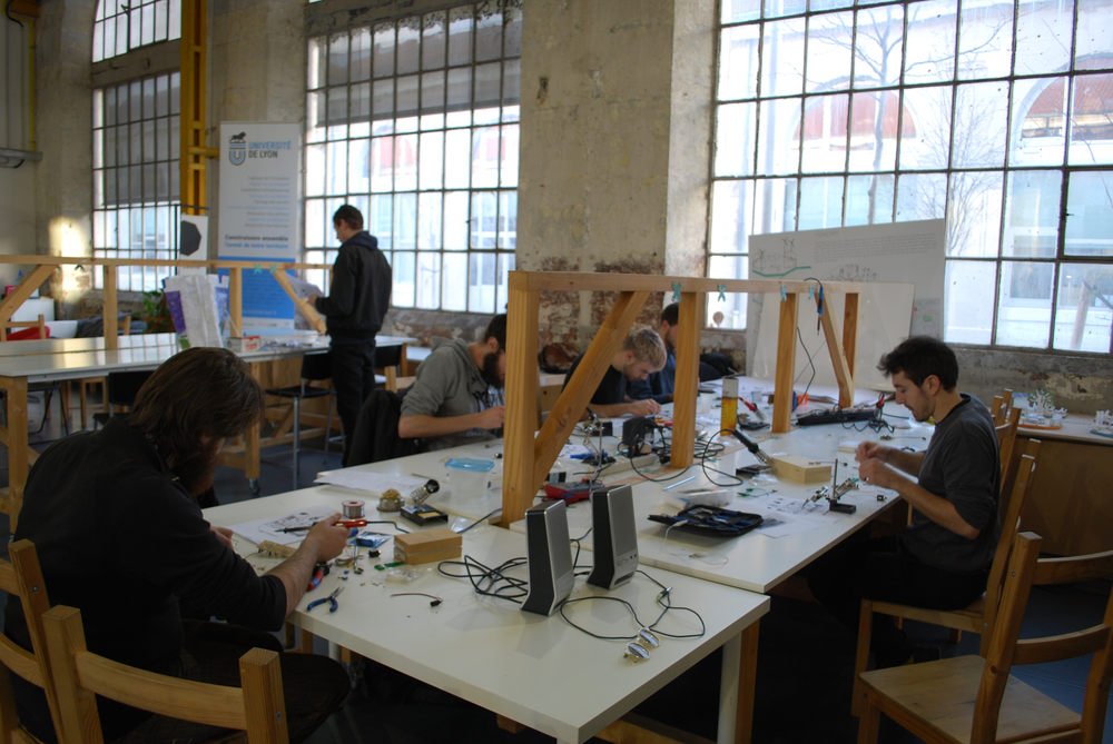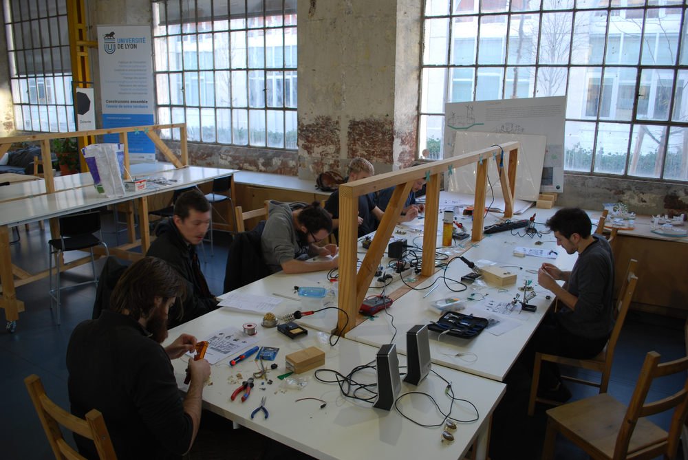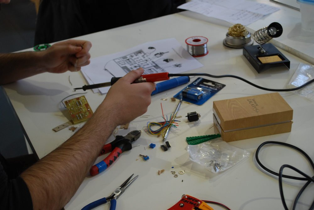 Une dizaine de participants se sont retrouvés et ont pu fabriquer eux-mêmes leur mono-thérémine avec un kit de construction et les outils du FabLab.