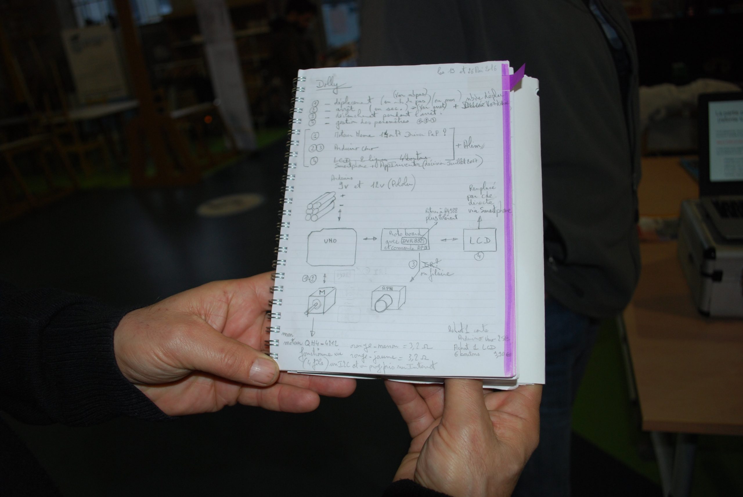 • La Dolly : un chariot qui permet de réaliser un traveling pour timelapse. Un arduino pilote le déplacement du chariot et le déclenchement de l’appareil photo. On définit pour chaque timelapse la distance, la vitesse d’avance et le nombre de prises de vues via une application prévue pour smartphone. La Dolly est totalement fonctionnelle depuis quelques mois.