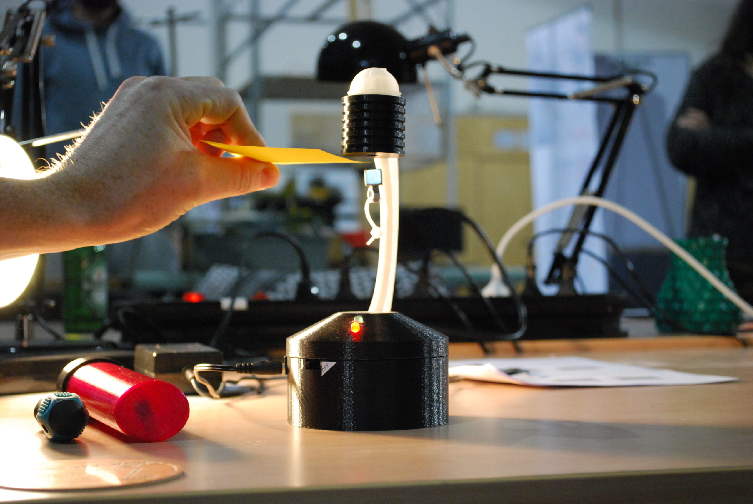 - Le Levitateur : Comme son nom l’indique cet objet permet de faire léviter un petit aimant… on a pu voir qu’une feuille peut bel et bien s »insérer entre l’objet et l’aimant, cependant, un trombone attirera forcément l’aimant. Cet objet a été principalement réalisé en 3D.